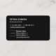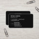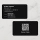 The design is of a professional styled business card, presented in black and white, with white fonts on black background. Customisation includes the holder's personal information and business details. Personalise the card by adding - as applies - the name and credentials, professional title, telephone and cell numbers, email address, business logo, business name, physical address, and website URL. Presented on the back side of the card are the business QR code and tagline (as applies).
