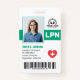 Create a stylish and professional ID badge for Licensed Practical Nurse LPN. This customisable template features a clean, modern design with space for a photo, name, employee ID, location, title (LPN), expiration date, and a barcode for added security. Easily personalise with your hospital or clinic logo, making it a perfect identification solution for healthcare professionals. This template is ideal for hospitals, clinics, nursing homes, and other healthcare facilities. The professional green colour scheme creates a clean and trustworthy aesthetic.