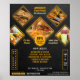 Having a professional and creative poster that shows your offerings to be included in your promotional materials as a fast food chain or restaurant owner, will help your business boost its customer engagement and lead to more sales. Unlike ordinary design layouts, this poster features a unique visual arrangement of details, perfect for displaying food specialities. From the incorporated black textured background, cool shapes structure, black and yellow colour scheme selection to the fonts used, this marketing tool got the right appeal to catch the attention of the target customers. What's more interesting is that you can customise this template by adding your own menu lists, fast food photos, business contact information, restaurant location, email, and website.