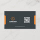 Make a lasting impression with this sleek, professional, and simple business card, perfect for any corporate setting. Featuring a stylish orange and dark grey design with a prominent logo placeholder and all essential contact information, this customisable template is ideal for networking, branding, and promoting your company. The minimalistic reverse side includes a QR code for easy website access. Fully customisable on Zazzle.