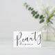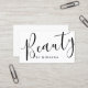 featuring word "beauty" in modern calligraphy font style on front side and details in modern sans serif font style on back side.