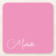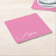 Professional modern handwriting name pink white square paper coaster
