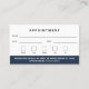 Keep your clients organised and your brand polished with this professional, modern "Your Next Appointment" business card. Designed with a navy blue colour scheme, this double-sided card combines elegance with functionality. One side showcases your logo and contact details in a sleek, minimalist layout, while the reverse side provides ample space for recording appointment reminders.