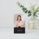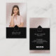 A simple modern monogram feminine design with your photo and house silhouette, with casual script font and modern block font on the pastel blush pink background. You can add your broker logo at the back side.