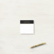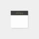 Professional Modern Post-it Notes featuring name in gold modern script font style with custom text in gold modern sans serif font style, on black with gold stripe upper border, on white background.