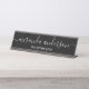 This desk name plate features name in white modern script font style and title in white modern sans serif font style on black background.