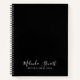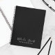 Professional Modern Notebook featuring name in white modern script font style with custom text in white modern sans serif font style on black background.