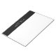 Professional Modern Notepad featuring name in white modern script font style with custom text in white modern sans serif font style, on black upper border, on white background.