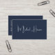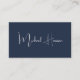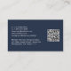 Professional minimal modern dark blue business card with your name in a stylish white signature script on the front and your contact information (such as email, telephone numbers, firm name, social media id's and mailing address) in clean, simple white typography on the back. On the back, personalise with your contact information and add a url address to create a scannable QR Code connected to your website, portfolio, social media profile, or any other platform that showcases your work, making it easy for customers and clients to explore your expertise.