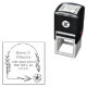 Modern return address stamp featuring your name in a stylish script and your address in simple typography. Save time and effort by effortlessly personalising your return address. Perfect for wedding invitations, party announcements, everyday correspondence and business mailings.