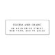 Modern return address stamp featuring your name in a stylish script and your address in simple typography. Save time and effort by effortlessly personalising your return address. Perfect for wedding invitations, party announcements, everyday correspondence and business mailings.