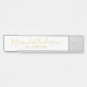 Make your business look more professional with a modern script white and gold hanging name plate.