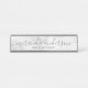 This desk name plate features name in grey modern script font style and title in grey modern sans serif font style on white marble background.