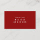 Crimson Red background. Condensed font. Stylish proportions. Ideal for: consultants, marketing professionals, teachers, cosmetologists, fashion professionals, hair stylists, architects, interior designers.