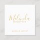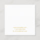featuring name in gold modern calligraphy font style and details in gold modern sans serif font style on white background.