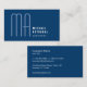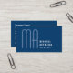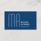 Tall thin font monogram on dark blue background representing knowledge, power, and integrity. Easy to read contact information on the back.Clean and professional business card.
