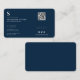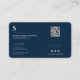 Professional Monogrammed QR Planin Navy Blue Business Card