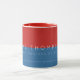 A red and blue coffee-mug personalised with name and profession
