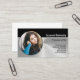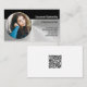 This business card design features a photo placeholder with template name, occupation and a template field for the business name and details. The back has the QR code which link can send customers to your web page, photographs of your work, referrals or other information. Fill in the personalise fields, remove any text or edit using the design tool to select a font style, size, and colour you like. The placeholder photo is courtesy pexels.com.