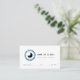 A professional modern optometry appointment reminder business card with a simple blue eyeball iris logo. Personalise by adding the name of your clinic and credentials.