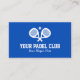 Professional Padel Tennis Coach business card template. Custom visit cards with rackets watermark design. Sports icon with modern typography for name and slogan. Blue or custom colour background. Pro businesscards for padel jobs, work, player, fan and fitness coach. Available in different sizes, paper thickness and round corner cut out shape. Change quantity to get the cheap bulk pack price. Personal company cards for club trainer, academy teacher, personal instructor, hitting partner, assistant, shop, sports store, sparring partner, business owner, free self employed worker, company boss, co workers, staff, court personnel, lead manager, tennis court builder, employees, volunteers, advisor, umpire, mum, dad etc. Printed on both sides.