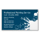 Simple online professional magnetic business cards for a painter service with a blue background and cool paint splatter graphic with a list of your services you can change. Designed for residential or commercial painting.