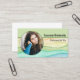 This colourful watercolor business card design features a photo placeholder with template name and occupation on the front. The back includes a template text field for the business name and details. Replace the placeholder photo with your photograph. Fill in the personalise fields, remove any text or edit using the design tool to select a font style, size, and colour you like. The placeholder photo is courtesy pexels.com.