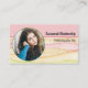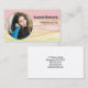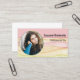 This colourful watercolor business card design features a photo placeholder with template name and occupation on the front. The back includes a template text field for the business name and details. Replace the placeholder photo with your photograph. Fill in the personalise fields, remove any text or edit using the design tool to select a font style, size, and colour you like. The placeholder photo is courtesy pexels.com.