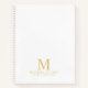 Professional notebook features custom monogram, name and text in gold classic serif font style on white background.