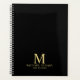 Professional planner features custom monogram, name and text in gold classic serif font style on black background.