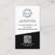 On the back, the top section stays white with black text for your contact details, QR code, and social icons, while the bottom portion shifts to a solid black background with white fonts and details for a striking, modern contrast.