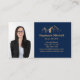 Luxury Professional business card for Real Estate Agents and Realtors, with key and a house in gold colour. You can add or insert your photo