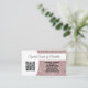 A faux rose gold glitter sets off the background of this business card design with QR code on the front. Fill in the template fields or click customize to select a font style, size, and color you like. Be sure to add your QR code on the front. Use the QR code link to send customers to reviews, photos, your website or another important link. The blank back leaves ample room for personal handwritten notes. You can also add this design to the business card magnet or one of the other products, where it fits appropriately, shown in the TRANSFER scroll bar on this page.