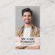 Make a lasting impression with this unique business card featuring your photo overlayed with your name in bold and trendy typography and your title in simple modern lettering. On the back, upload your logo, personalise your contact information and input your url web address to create a scannable QR Code connected to your website, portfolio, social media profile, or any other platform that showcases your work, making it easy for customers and clients to explore your expertise.