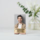 Modern business card with your photo overlayed with your name and profession bold typography on a brushed gold faux metallic strip. On the back, add your contact information and add an address to create a scannable QR Code connected to your website, portfolio, social media profile, or any other platform that showcases your work, making it easy for customers and clients to explore your expertise.