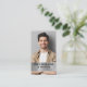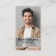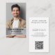 Modern business card featuring your photo overlayed with your name and title in bold typography on a brushed silver faux metallic strip. On the back, add your contact information and input a URl an address to create a scannable QR Code connected to your website, portfolio, social media profile, or any other platform that showcases your work.