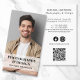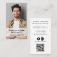 Stand out from the crowd and make a lasting impression with this professional business card with your photo overlayed with your title and name in bold and trendy typography. On the back, personalise with your contact information and social media user name, and input a url address to create a scannable QR Code connected to your website, portfolio, social media profile, or any other platform that showcases your work, making it easy for customers and clients to explore your expertise.