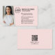 This sleek and simple square business card is perfect for corporate brands, small businesses, consultants, freelancers, or any professional looking for a modern, clean aesthetic. The front of the card features your photo, company logo, name, title or business name, and contact information, creating a professional yet personalised touch. On the back, you'll find a scannable QR code and social media icons with the phrase "Connect with us!" to encourage easy engagement. The card’s bold typography and blush pink background on both sides give it a soft yet polished look, making it versatile for any brand. Personalise your own today for a stylish and professional impression! Simple Blush Pink White Professional QR Code Company Your Logo Business Card.