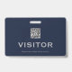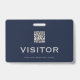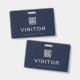 Keep your visitors and guests easily identified with this simple customisable QR visitor badge. The blue and grey design features space to upload your QR code and text that reads "Visitor" in a classic font. The QR code makes it easy for guests to access important information about your facility or event. The text at the bottom reminds visitors to please return the badge before leaving. This badge is perfect for businesses, hospitals, schools, museums, attractions, and more.