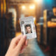 Photo ID badge featuring your custom photo and logo on an elegant marble brick design. On the back you can add a custom bar code or QR code and additional texts (or delete the templates). Set for a real estate agency and customisable for other professionals.