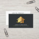 Modern trendy black and gold business card designed for realtors, builders, contractors and more.Design featuring of gold house icon on the front with two lines of custom text on a black background, and add your full contact details to the back and social media details. Trendy chic modern design.
