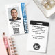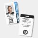 Professional security guard badge with a profile photo and company logo. This editable template can be personalised with a photo, name, job title, ID number, company, expiration date, QR code, and logo for branding. A modern design with gradient stripes and a clean font. It offers fully customisable text to fit your business brand. Ideal for various workplaces and roles, such as security guard, close protection officer, corporate private security, store security, personal bodyguard, official doorman, event team, retail assistants, medical staff, small business pass, conference name tags and more! Printed colours: black, white and blue. Shop the collection for more popular security product ideas and supplies for sale online.