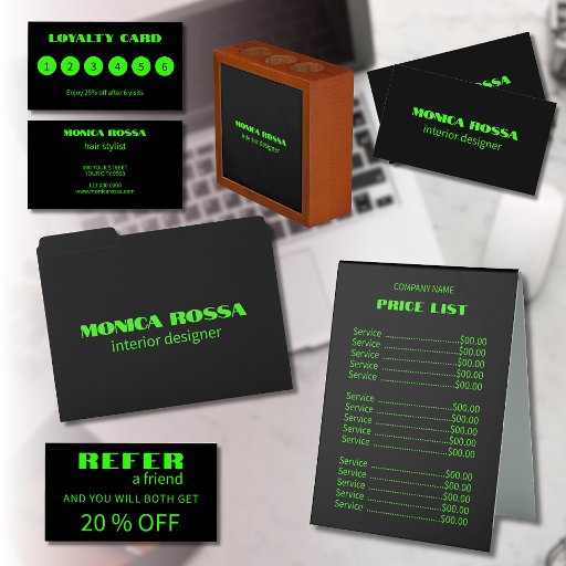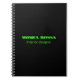 Minimalist Clean Black Soli Colour Background and Neon Green modern font Business Botebook. Personalise for your custom use. Click on the "Customise It" button to change the background colour, font styles and font colour.