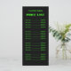 Minimalist Clean Black Soli Colour Background and Neon Green modern font Price List. Personalise for your custom use. Click on the "Customise It" button to change the background colour, font styles and font colour.