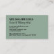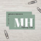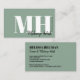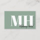 Sage Green Professional Simple Modern Monogram Business Card. You can change it to any business you want—makeup artist, lash specialist, hair stylist, or even something like marketing, consulting, and more! Featuring a soft sage green background with black and white fonts in a mix of classic bold typography and elegant script for the details. A trendy and chic look that still feels polished and professional. All colours can be customised to match your brand. The side name on the front is designed to work with most initials, but you can adjust the spacing in the full editor if needed.