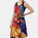 A rooster's artistry comes to life with vibrant and textured brush strokes. Fiery reds, oranges, and yellows dance across the canvas, creating a dynamic and powerful image of a proud rooster.
