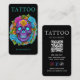 Professional tattoo artist business card featuring a bold floral skull tattoo design. Perfect for tattoo studios, tattooists, and tattoo shops seeking artistic, modern, and eye-catching branding.