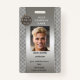 Photo ID badge in metallic construction style with space for your custom photo and logo. On the back you can add a custom bar code or QR code and additional texts or delete the templates.