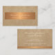 Modern trendy glamorous gold copper metal and beige leather (PRINTED, NOT REAL LEATHER) elegant script signature calligraphy professional business card with an exclusive glam luxury touch. ++++++++++ Suitable for fashion, boutique owner, personal stylist, interior designer, salon manager, makeup artist and other creative professions.