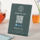 Boost your business's contactless payment options with this professional Venmo QR code scan to pay logo pedestal. Sleek and stylish, this sign is perfect for displaying at your checkout counter, restaurant table, or anywhere customers can easily scan and pay. Customise the design with your business logo and personalise it with a message.